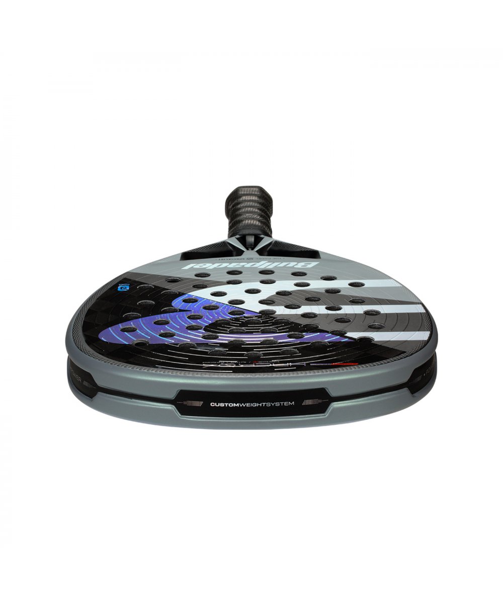 La Bullpadel HACK 04 incorpora una nueva superficie rugosa 3D con círculos concéntricos, diseñada para optimizar los efectos. Al impactar la pelota, este nuevo rugoso, genera una mayor fricción, asegurando un contacto más prolongado y preciso, lo que se traduce en efectos ganadores, tanto en golpes desde el fondo como sutiles cerca de la red.